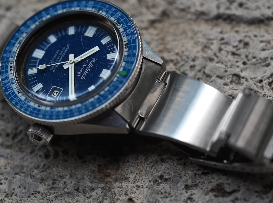 des Gehäuses treffen die Lünette. Es enthält auch eine große spitze Krone mit dem Jenny "Fisch" -Logo darauf. Aktion auf Abschrauben der Krone ist, was ich ein bisschen hart nennen würde.